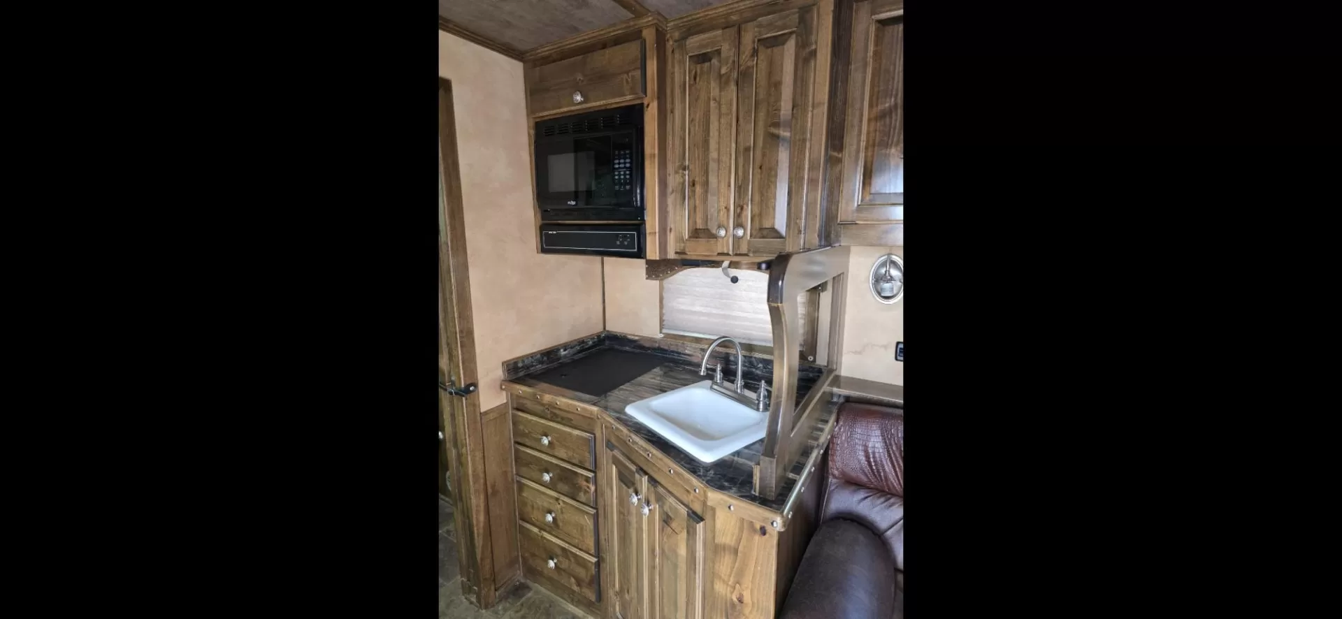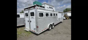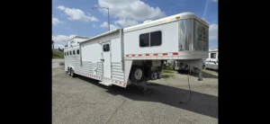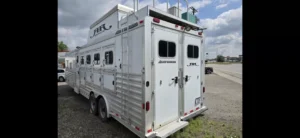 Luxury 5-Horse Living Quarter Trailer – Travel in comfort with this 2014 Elite 5 Horse LQ. The trailer features spacious, safe stalls for five horses with easy loading, plus a fully equipped living quarters including sleeping area, kitchen, and bathroom. Perfect for long trips, showing, or hauling in style—where both you and your horses ride in comfort.