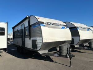 The 2024 Heartland Pioneer RD 211 is a well-designed travel trailer, perfect for couples or small families. Measuring approximately 26 feet in length and with a dry weight around 4,800 lbs, it’s easy to tow with a half-ton truck.